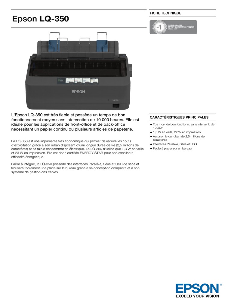 Autre rpson comme un moyen d'imprimer un document, vous pouvez également utiliser cet outil pour numériser une variété de documents avec facilité. Log in not signed in yet? Mtbf of 10,000 operating hours economical: Le très réputé epson lq porte un temps moyen impliquant une défaillance de 10 heures de fonctionnement. Paralel, seri ve usb arabirimlerine standart olarak sahiptir ve kompakt tasarımı ve kablo yönetim sistemiyle masalara kolayca yerleştirilebilir.